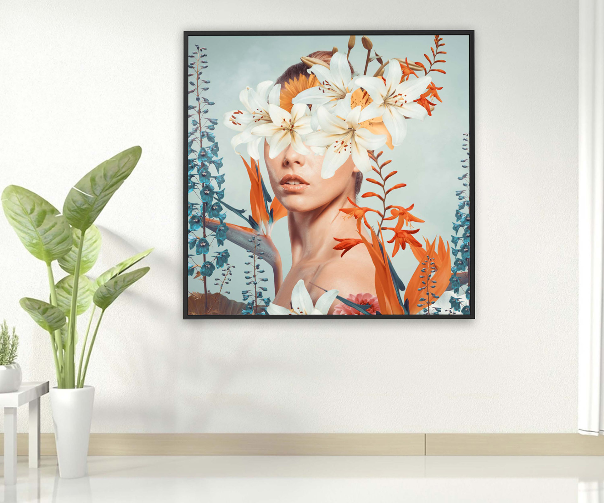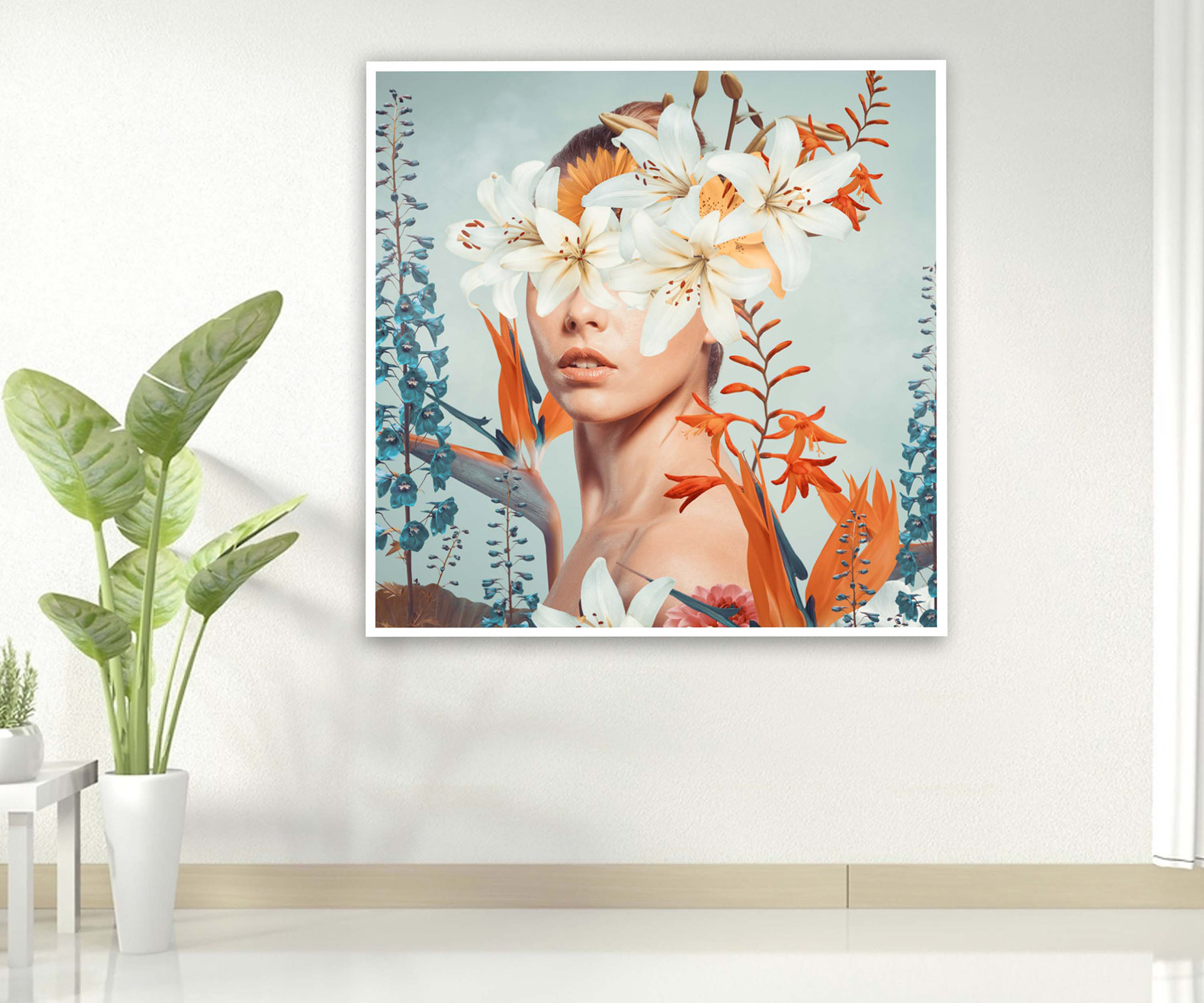 Картина - Абстрактний колаж дівчина з квітами Артикул 3410 №19940