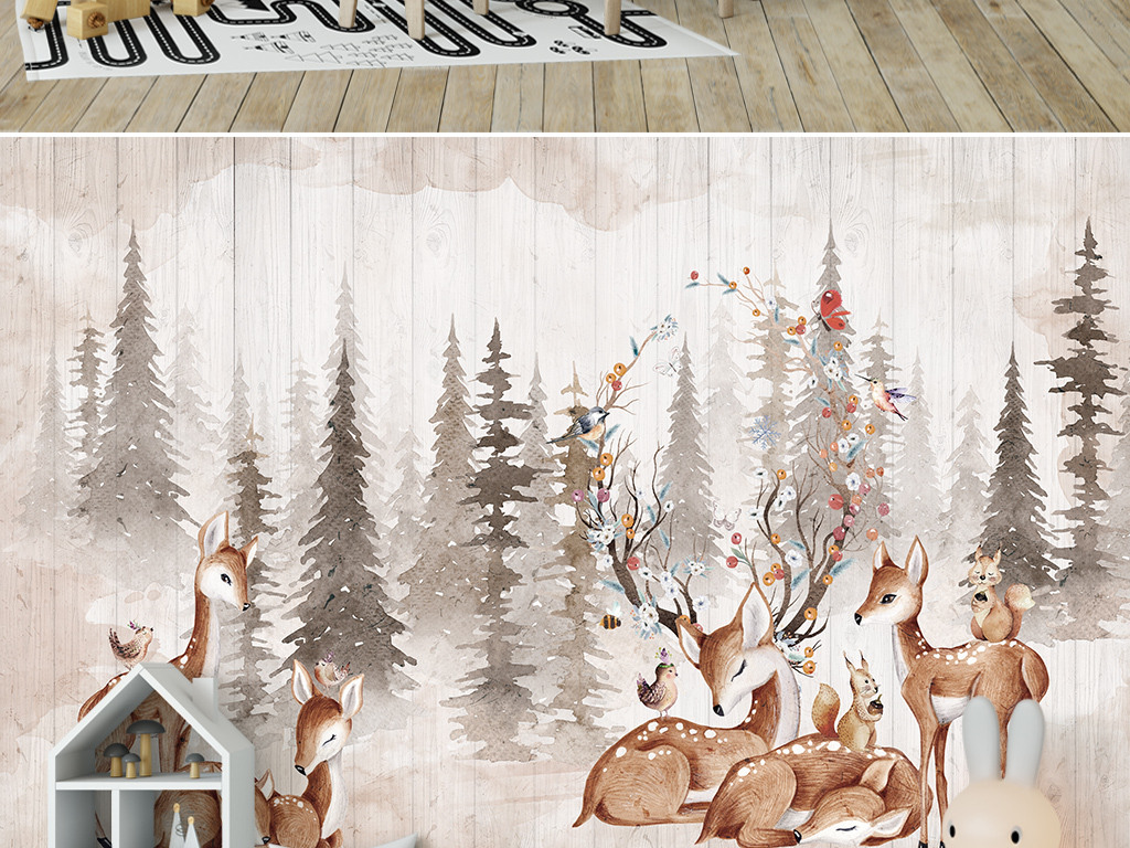 Фотошпалери - Стадо оленів біля узлісся №15940