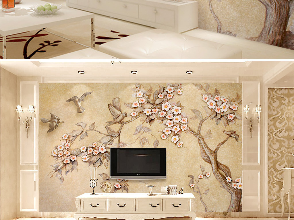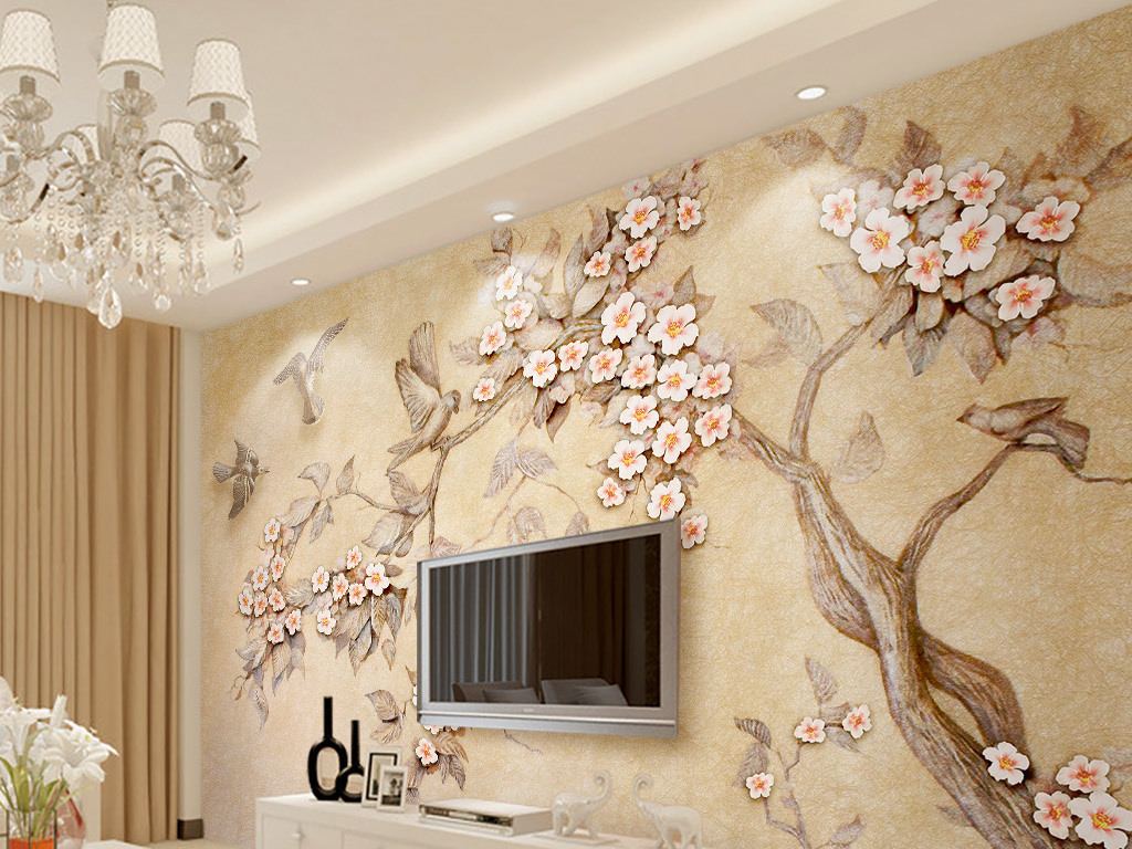 Фотошпалери - Кольорова різьблена квіткова гілка №15976