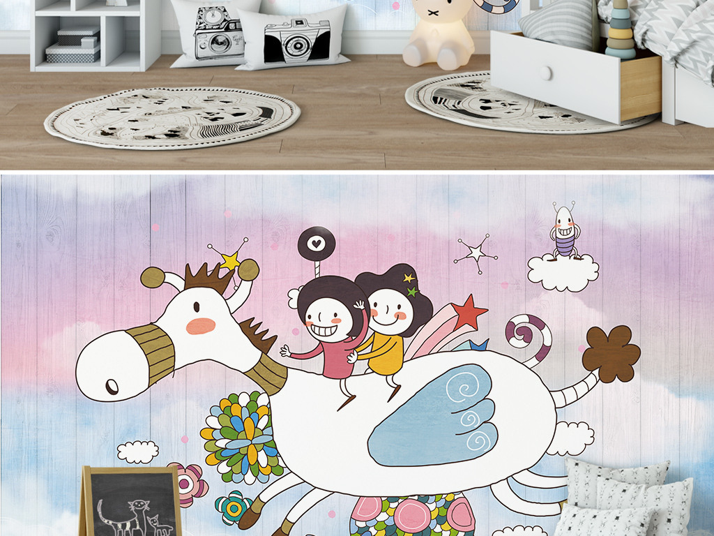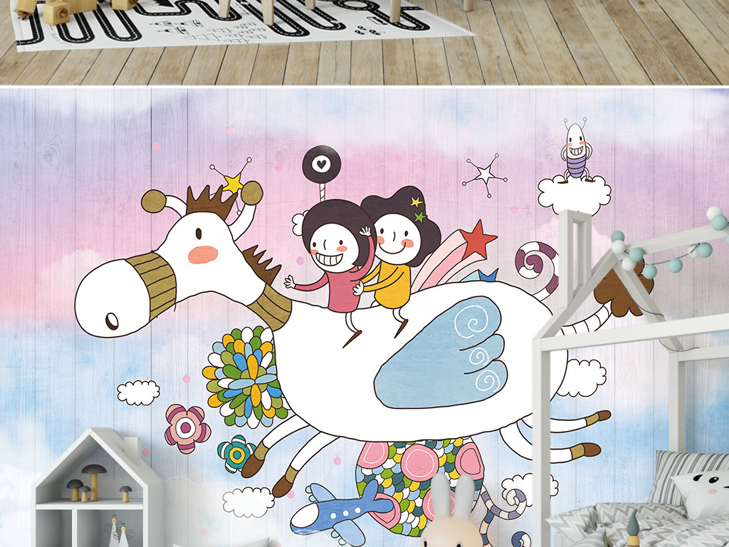 Фотошпалери - Діти на літаючому поні №15930