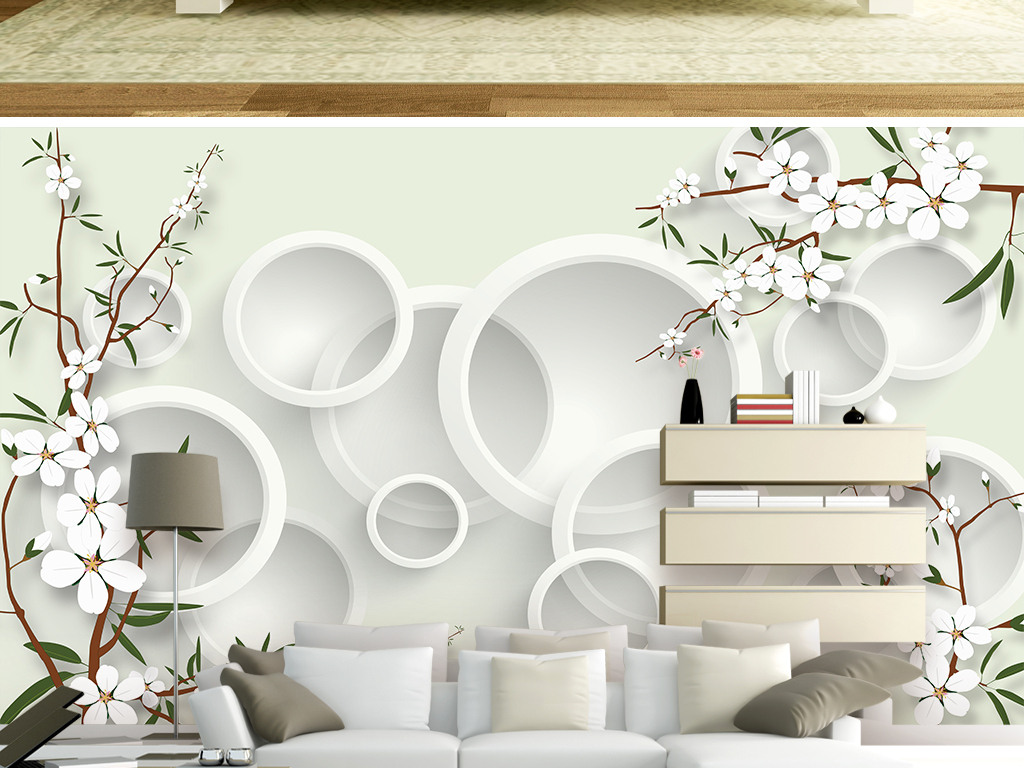 Фотошпалери - Круги та елегантні свіжі квіти №15987