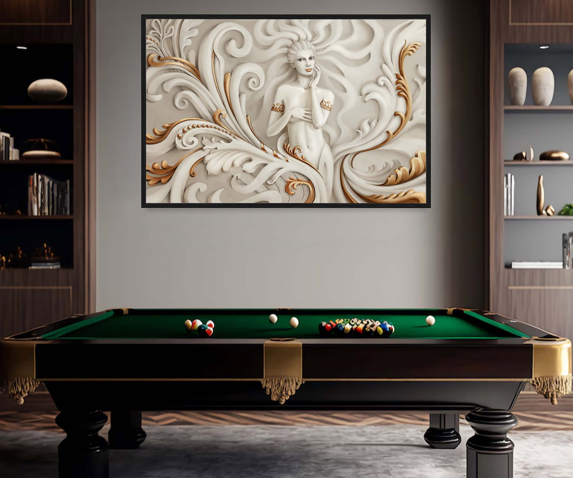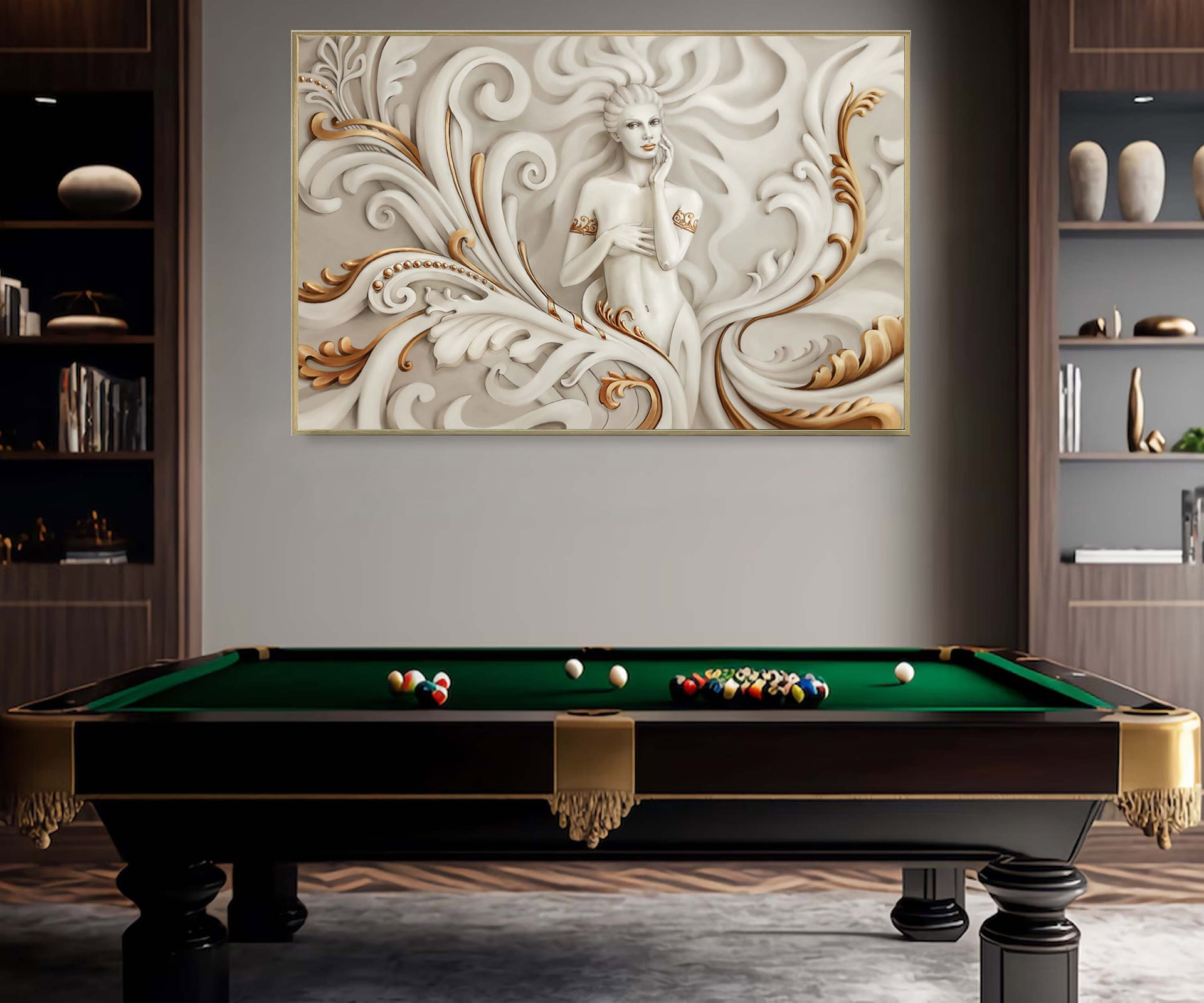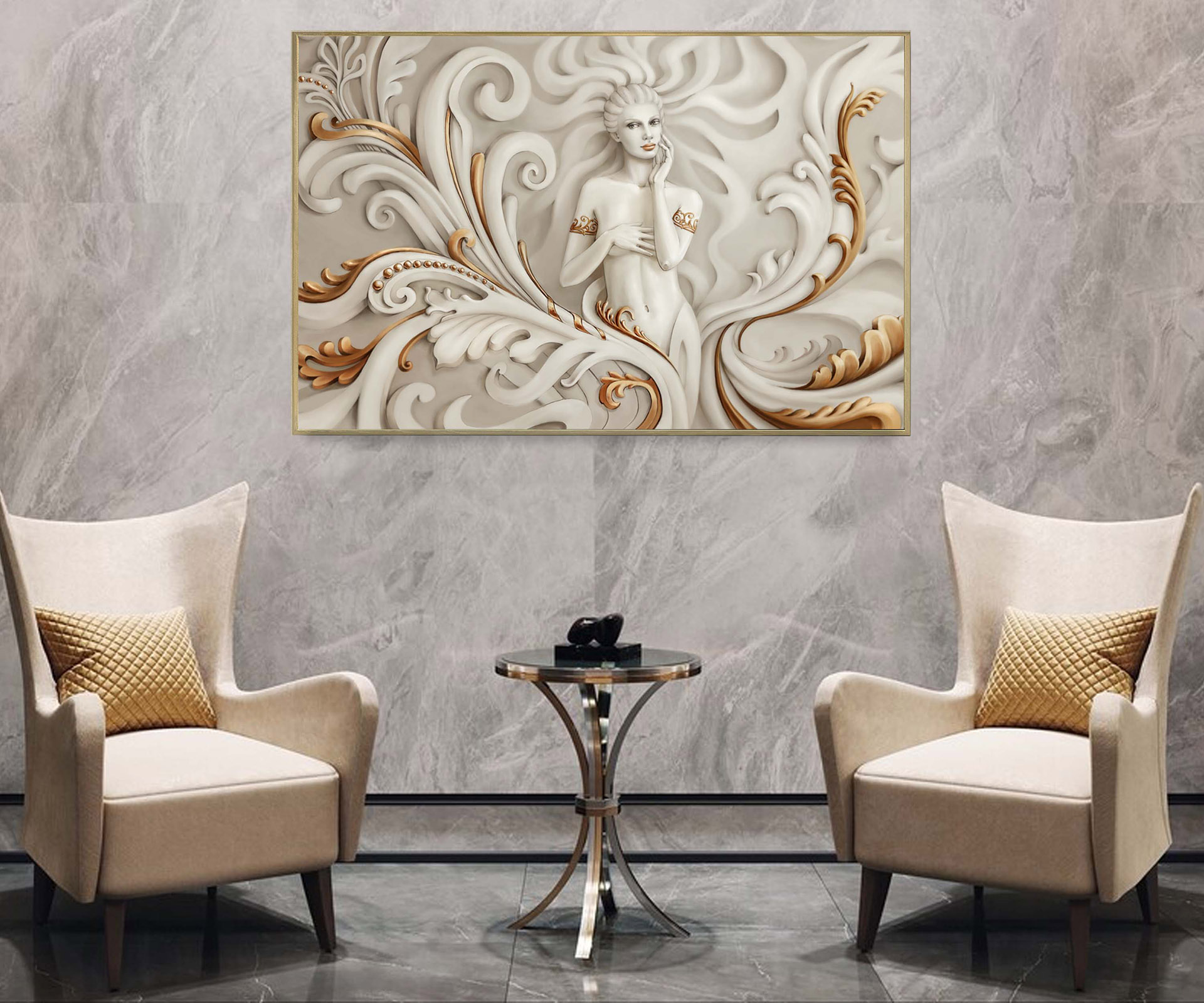 Картина - Об'ємний білий з золотом візерунок і дівчина Артикул 2903 №19789