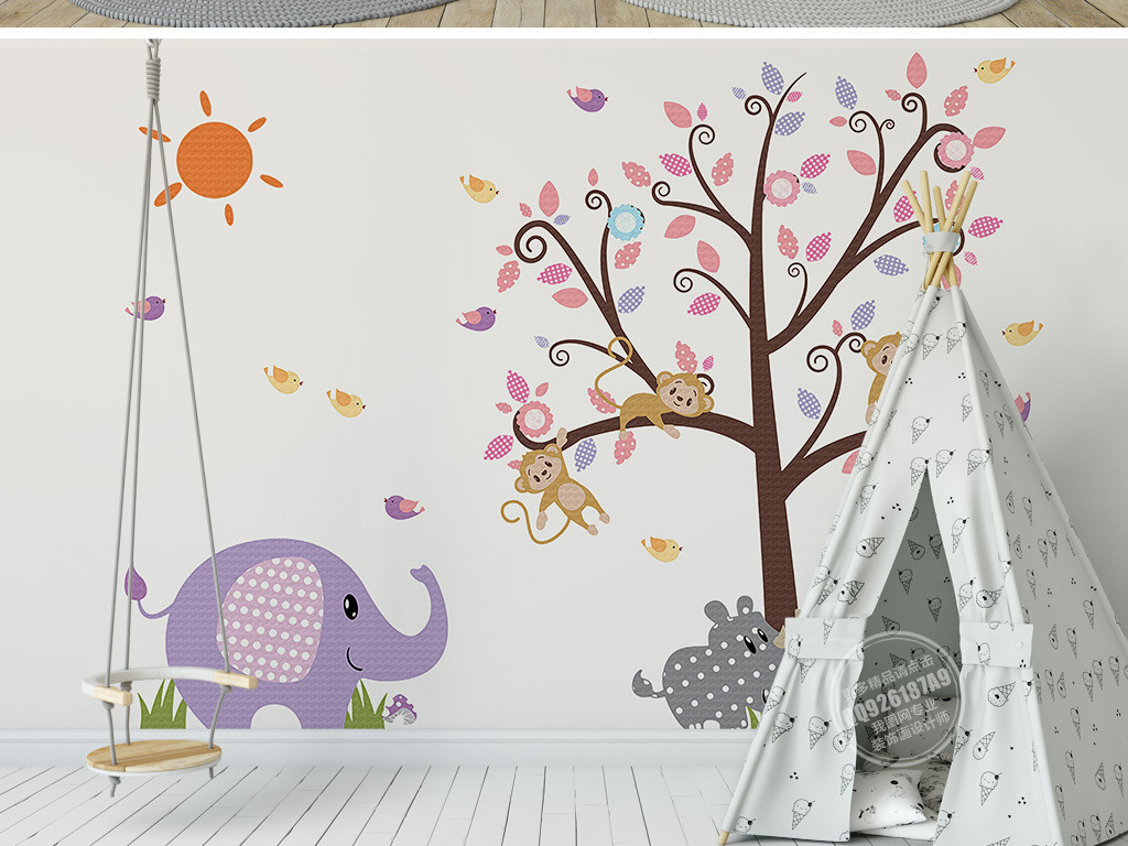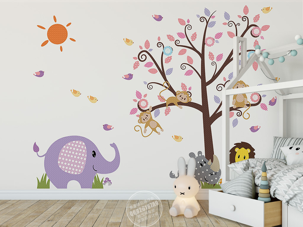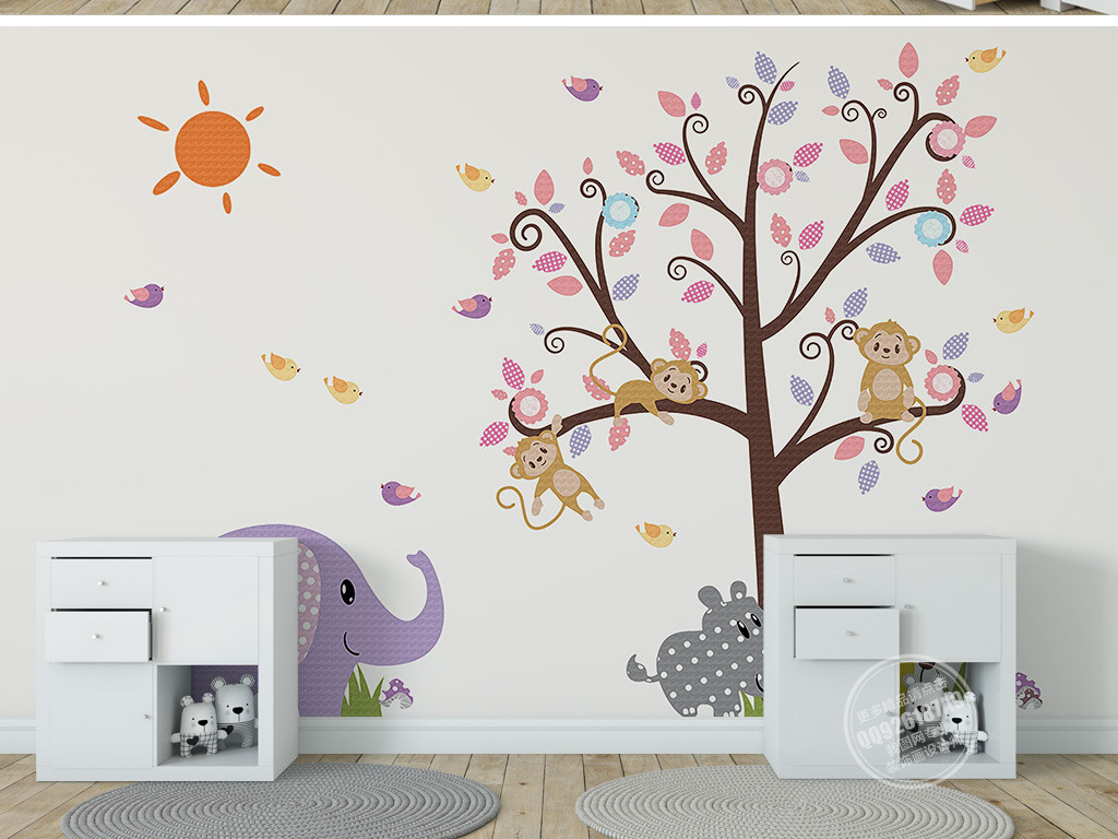 Фотошпалери - Мавпочки на дереві та слон №15839