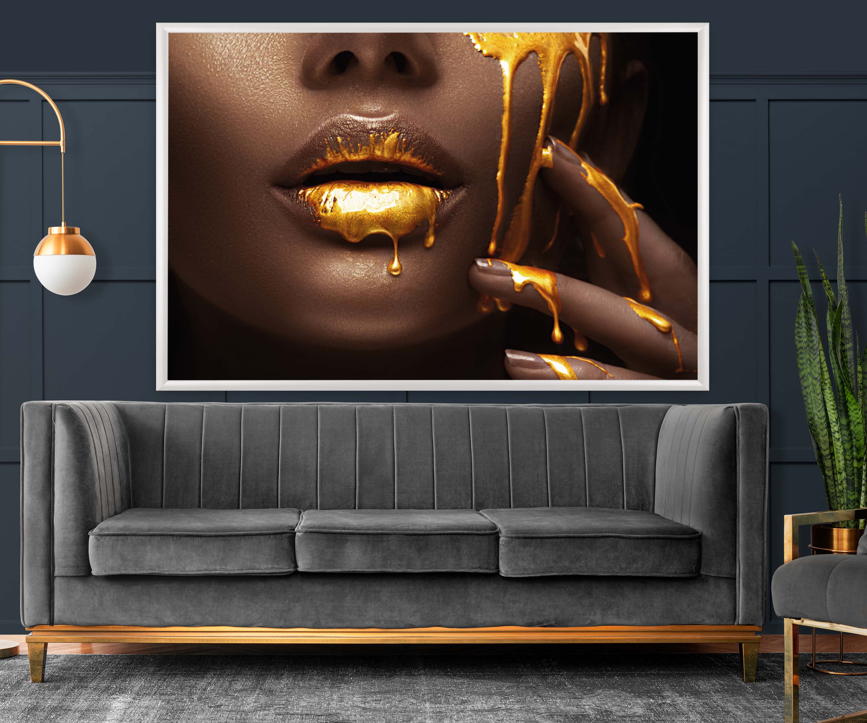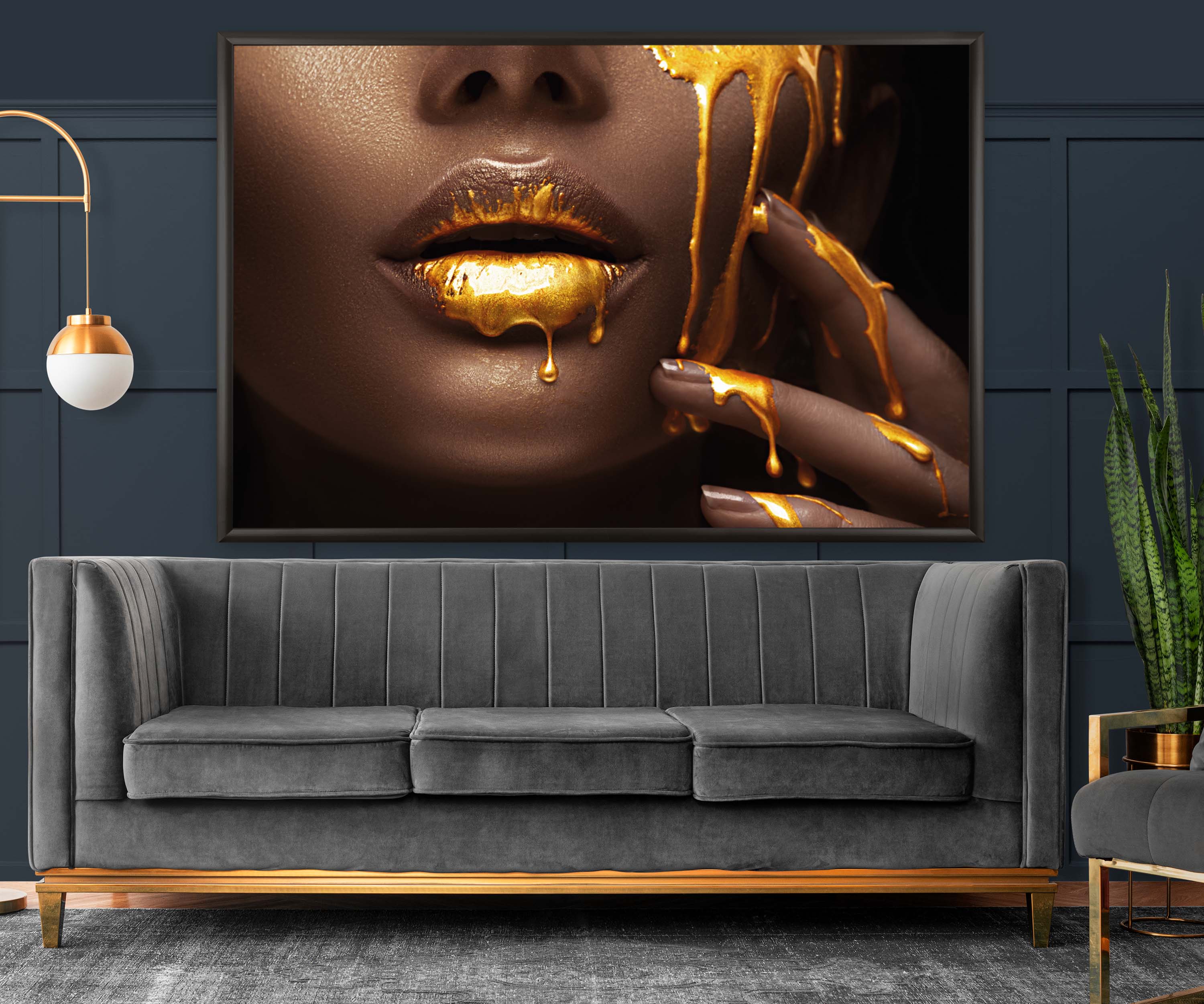 Картина - Обличчя дівчини в патьоках золотої фарби Артикул 4456 №21205