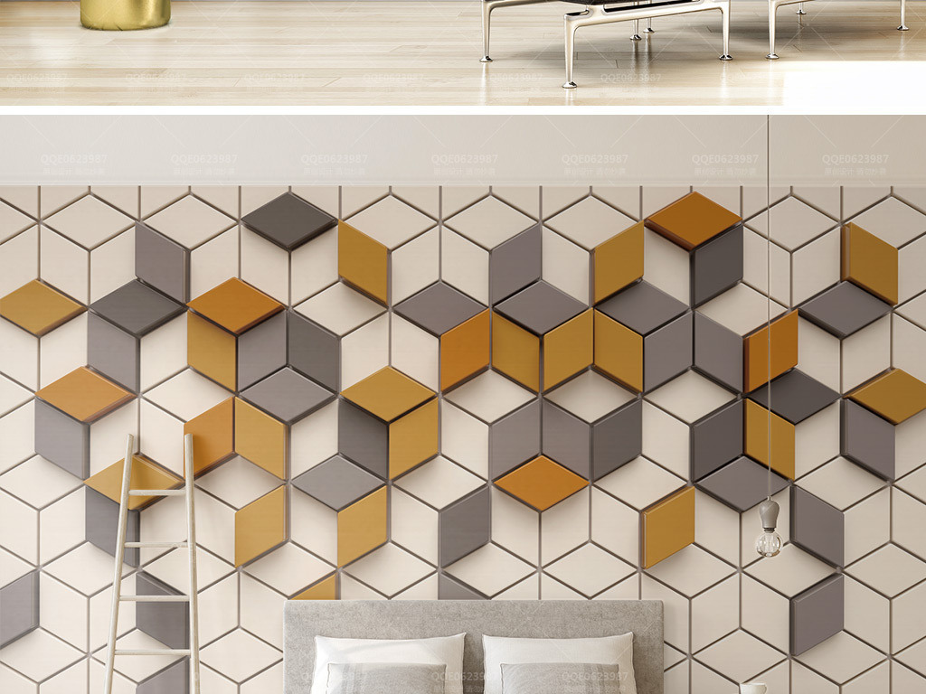 Фотошпалери - Сіро-золоті ромбики №15969