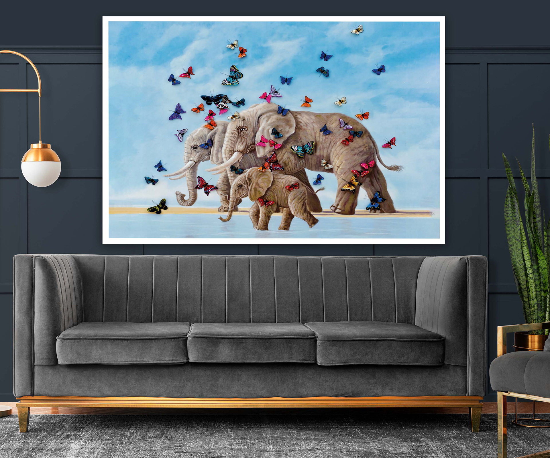 Картина - Сім'я слонів та метелики Артикул 1703 №19630