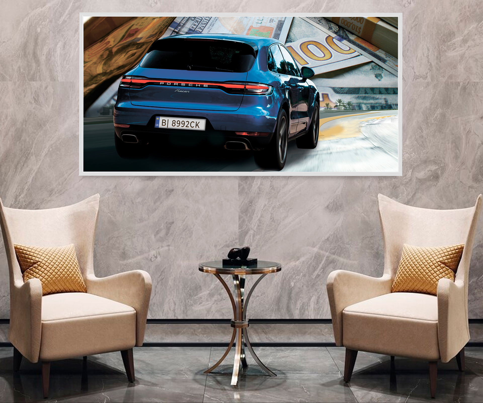 Картина - Синє Порше на тлі американських грошей Артикул 1885 №19551