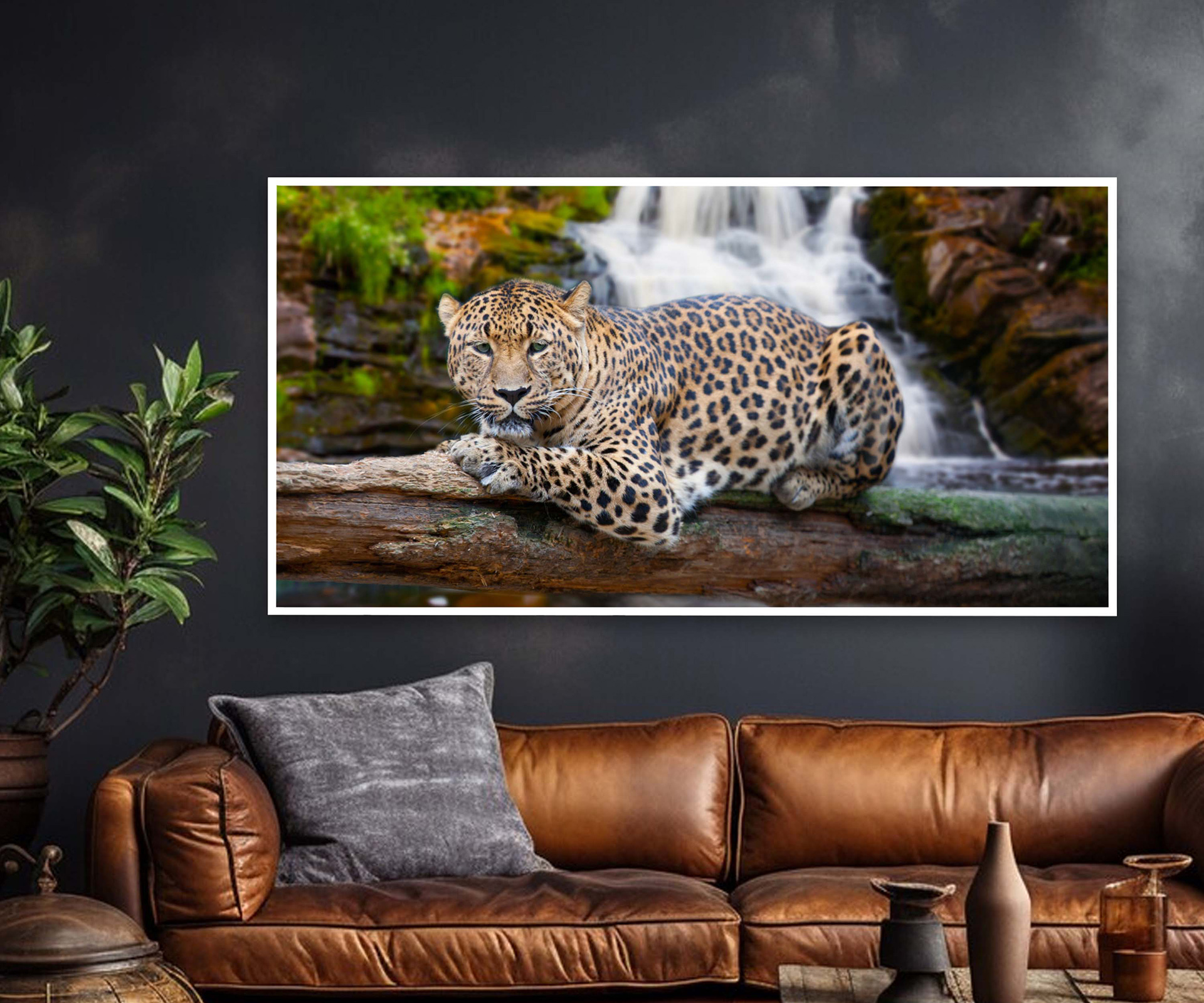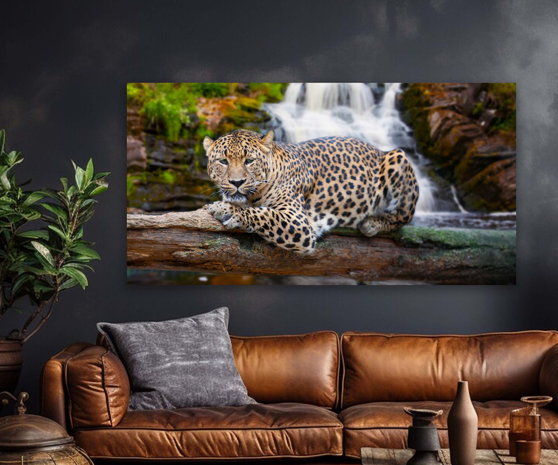 Картина - Сумний леопард та водоспад Артикул 1672 №19599