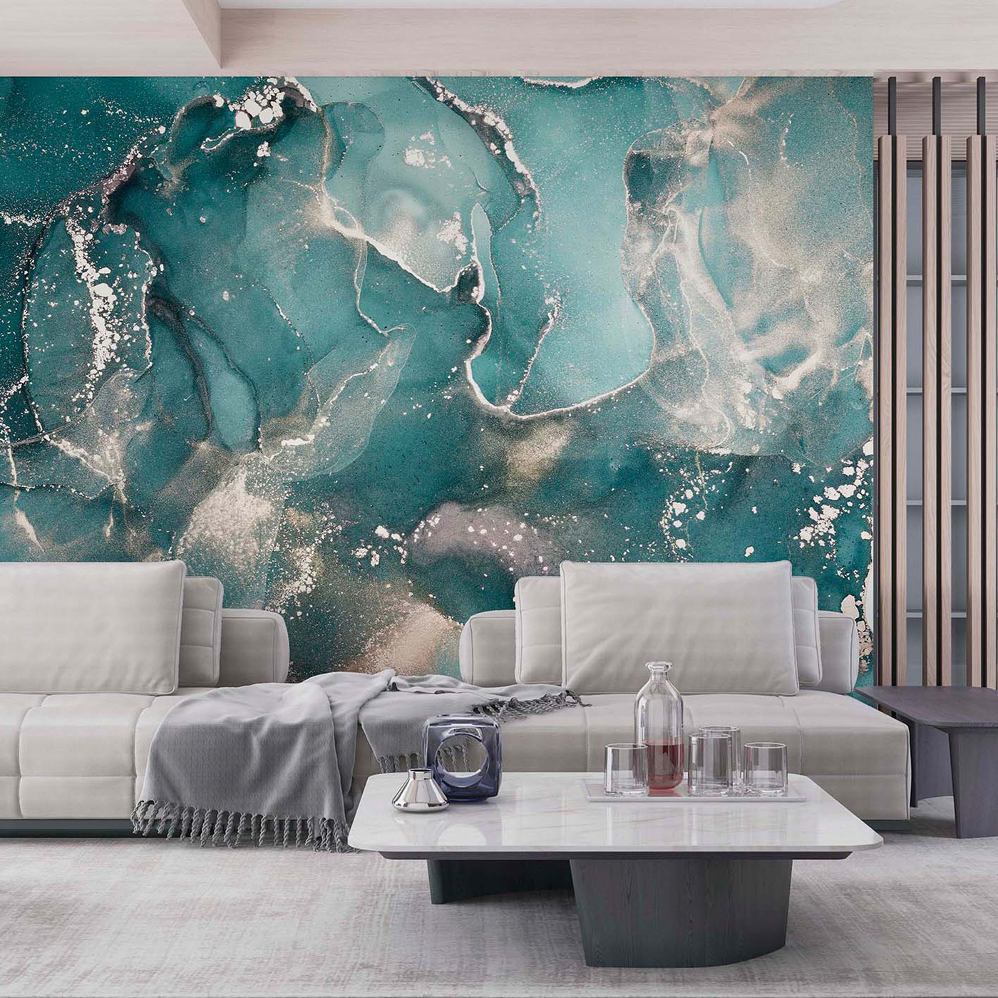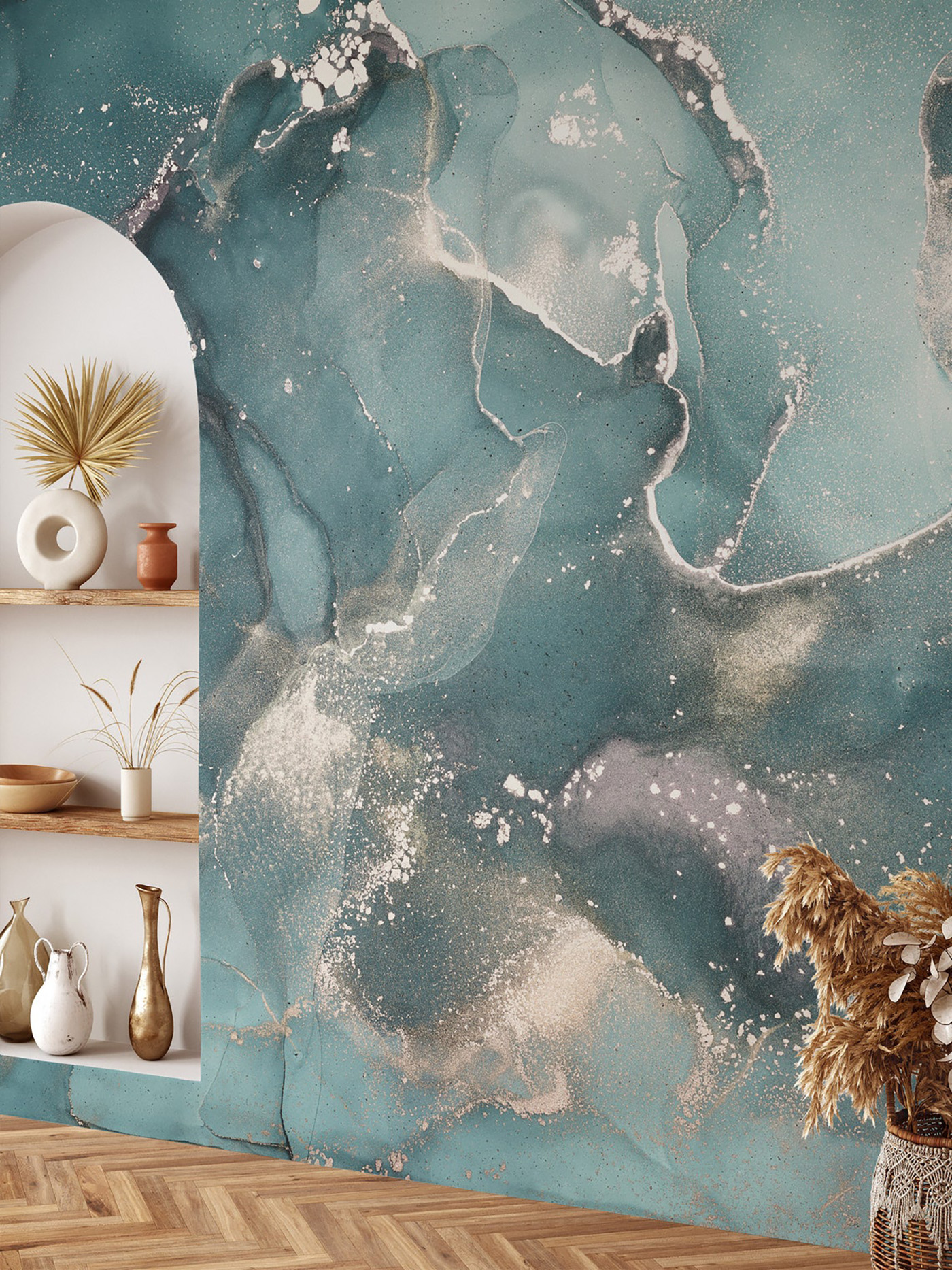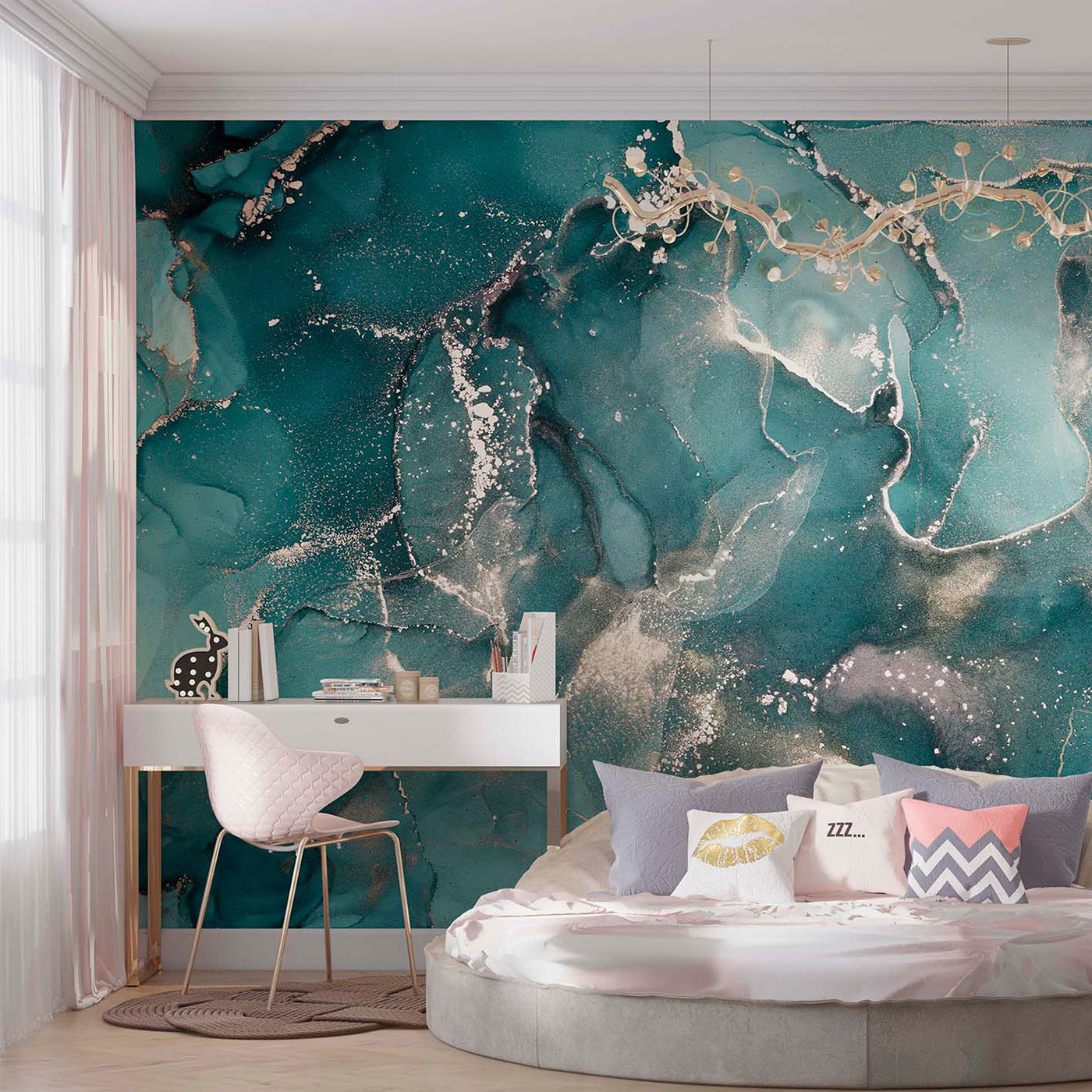 Фотообои - Нежно-зеленый флюид с золотом №20718