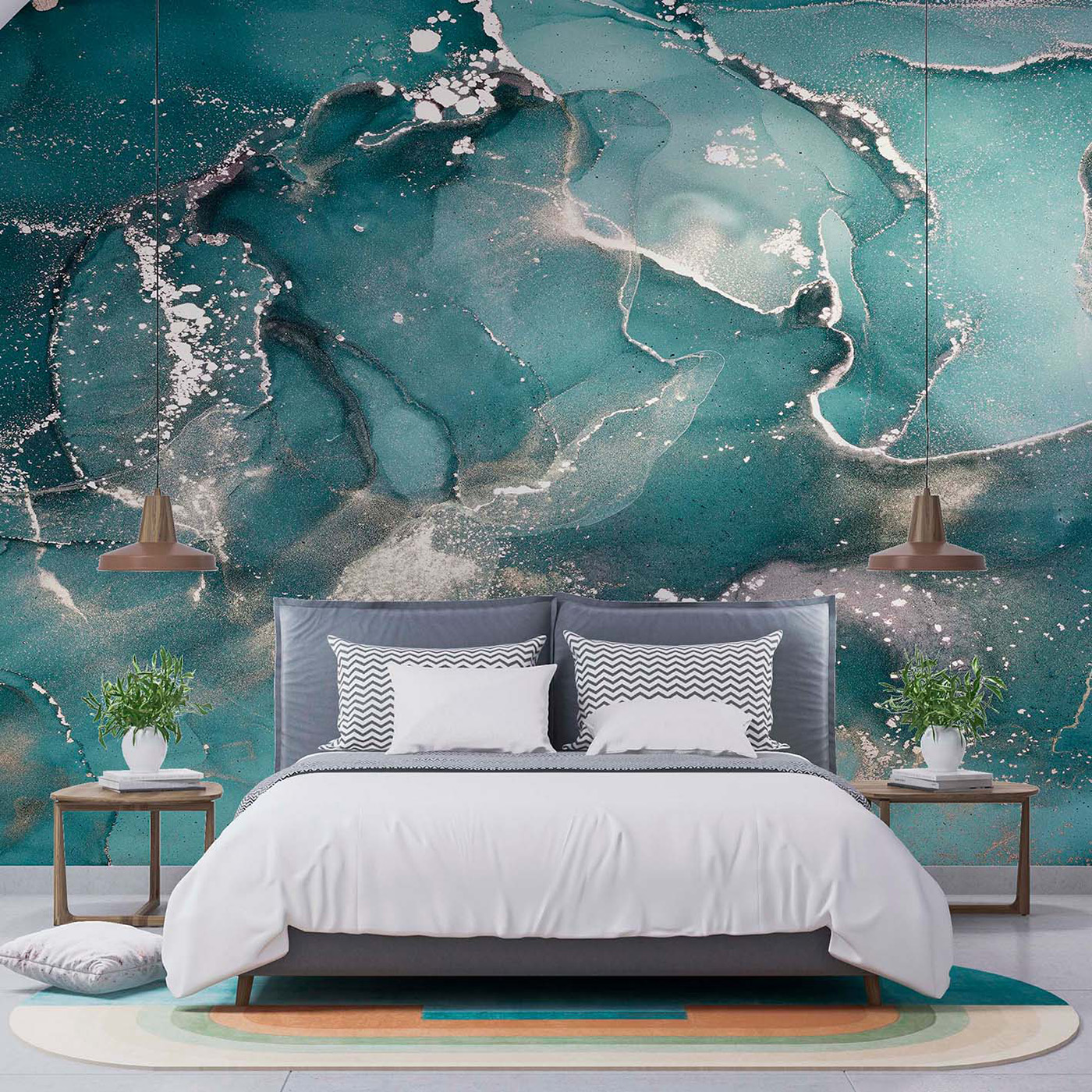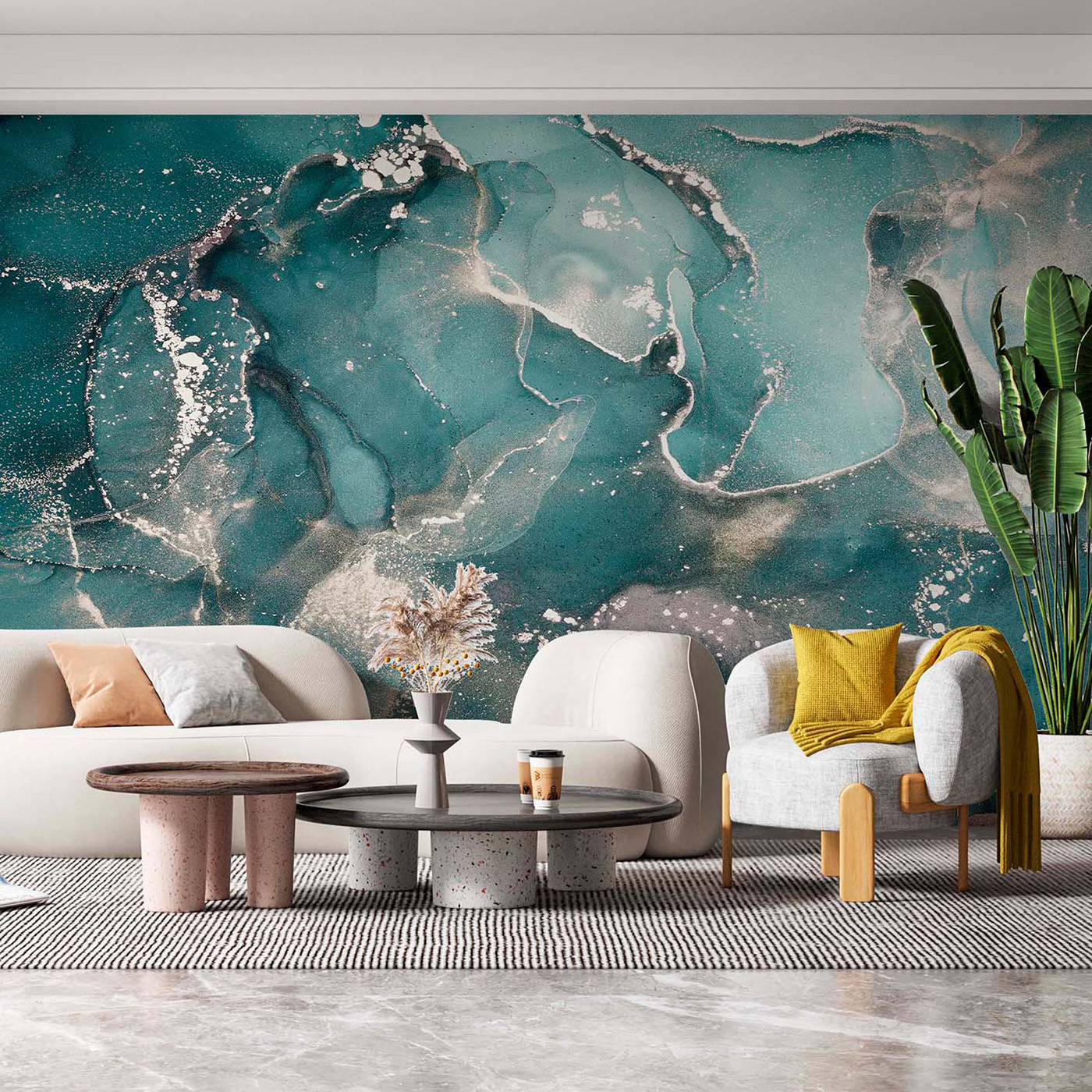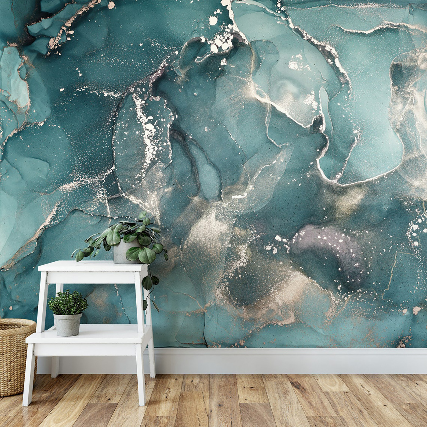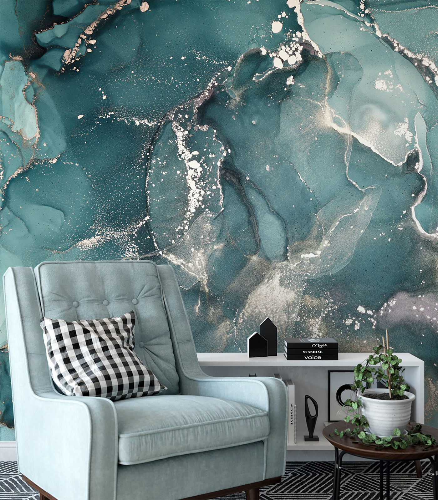 Фотообои - Нежно-зеленый флюид с золотом №20718