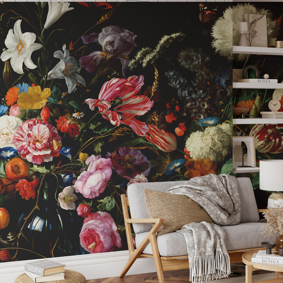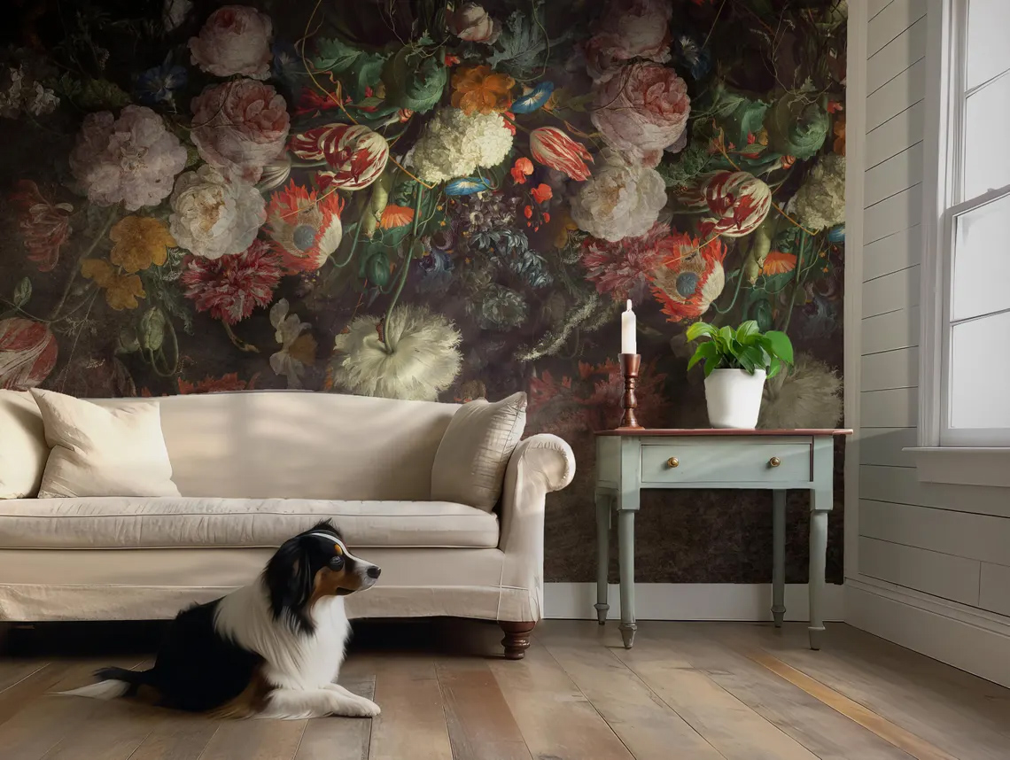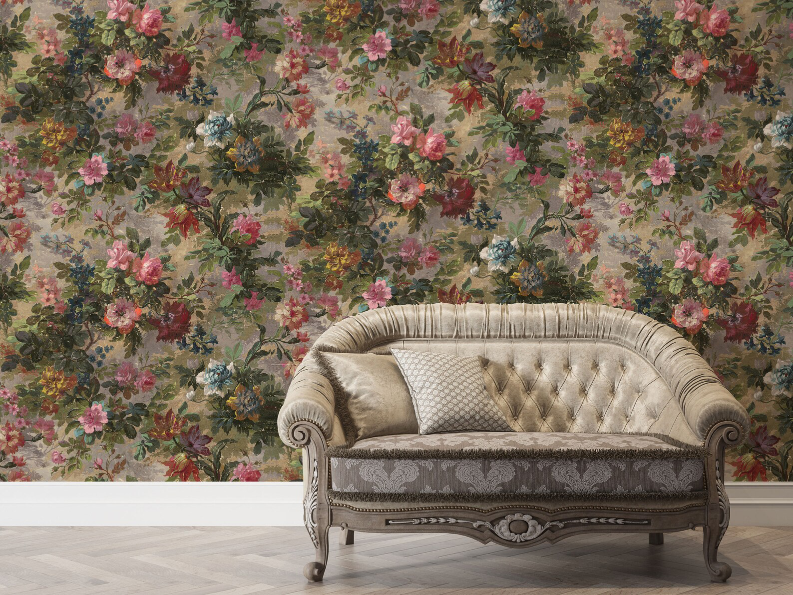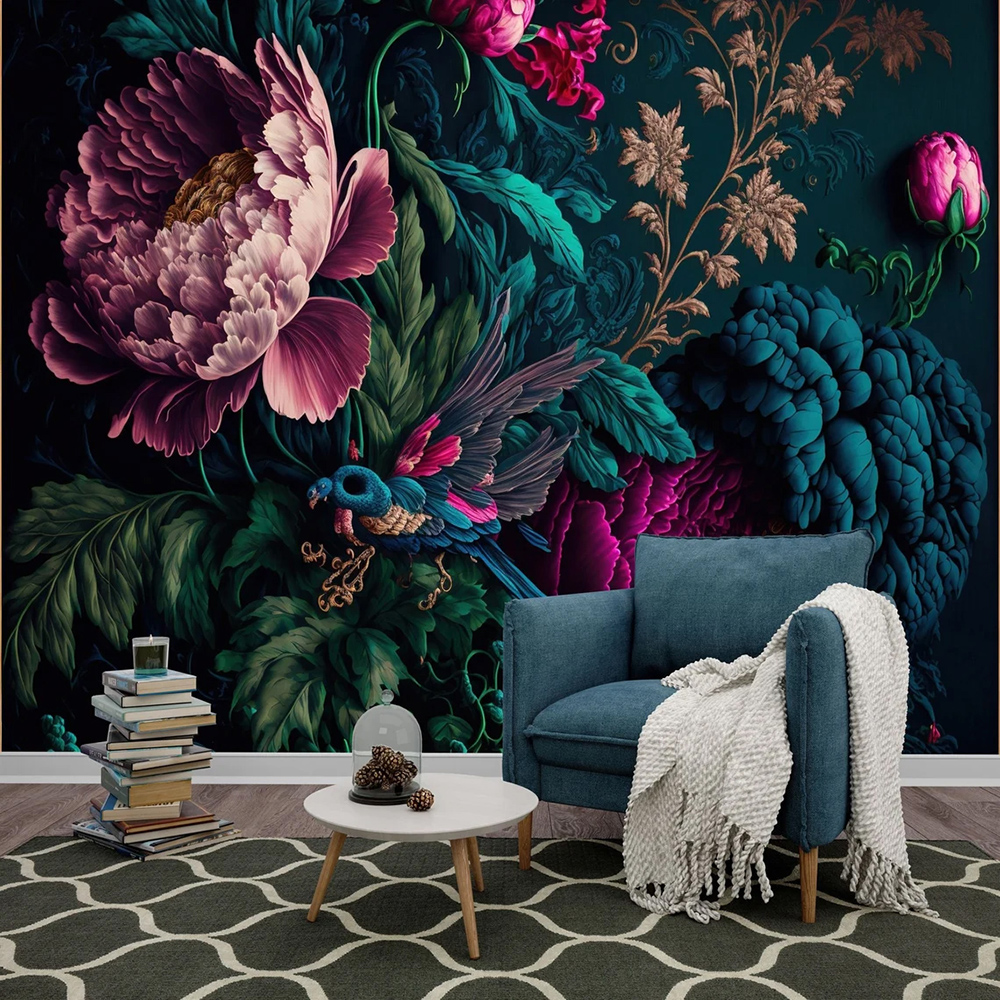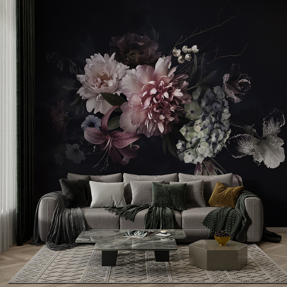 - Скрывают недостатки стен: Насыщенные цветочные композиции отвлекают внимание от мелких неровностей стен.