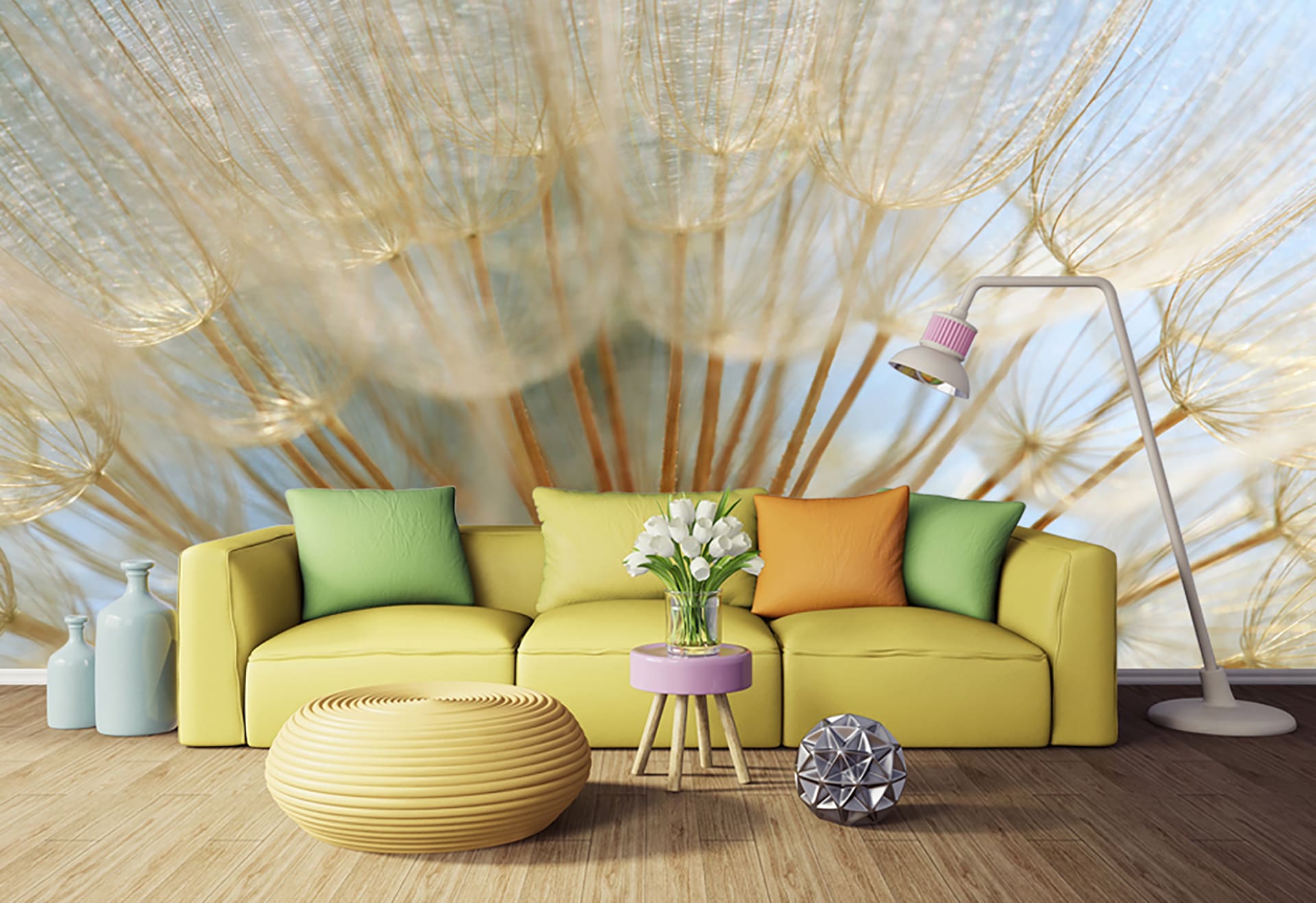 Веселі ромашки, кольорові кульбаби або казкові квіти змусять посміхатися вашу дитину щодня. Більше варіантів у розділі фотошпалери для дитячої.
